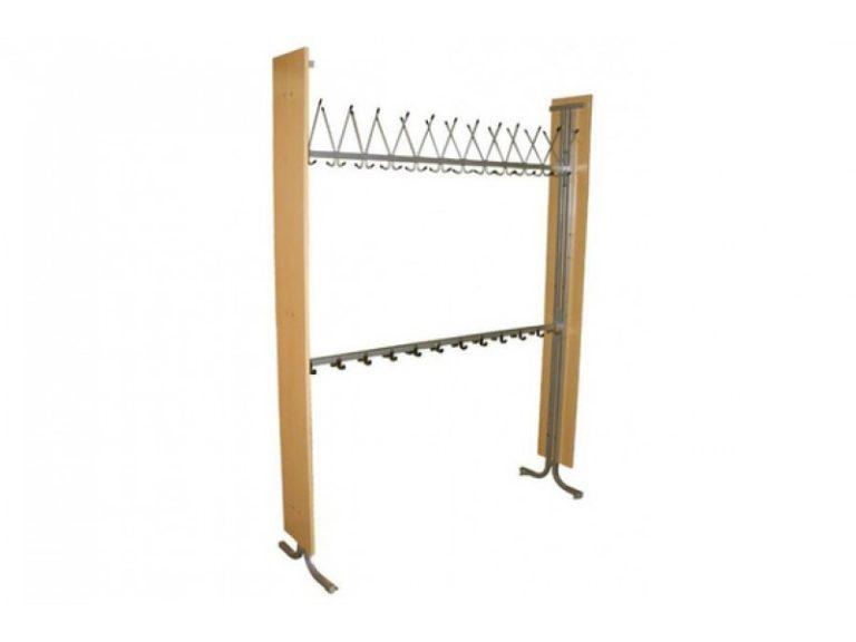 Вешалка имеет крючки для одежды и пакетов со сменной обувью.