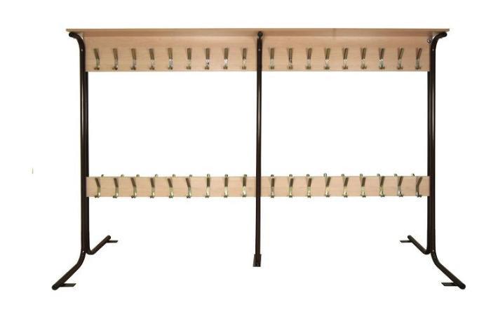 Вешалка имеет полку для головных уборов и крючки для одежды и пакетов со сменной обувью.